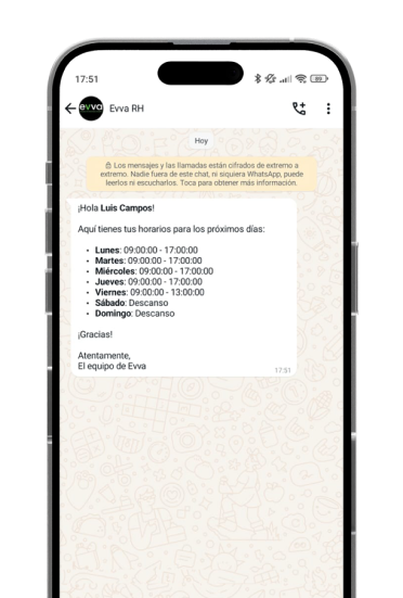 Evva simplifica la gestión de empleados digitalizando la distribución de horarios y turnos, eliminando errores y mejorando los procesos operativos a través de WhatsApp.