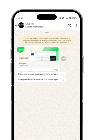 Con Evva envía información crítica, los recibos de nóminas de tus empleados y documentos directamente a través de WhatsApp.